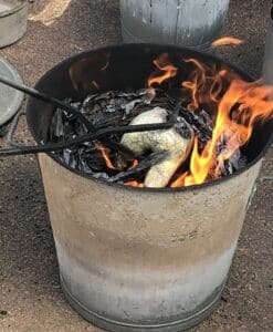 2ème partie : ensuite, viendra le temps de l’émaillage des pièces, la cuisson Raku, l’enfumage des pièces et du nettoyage en fin de stages. Il est également important de prévoir pantalon, manches longues et chaussures fermées pour cette étape.