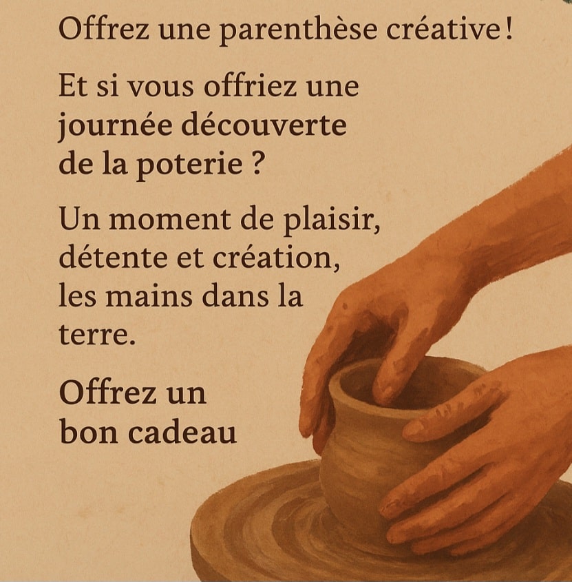 Vous découvrirez la "magie du tour". Un petit moment rien qu'à soi ! Voir votre boule de terre se transformer en pot !